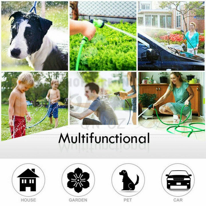 - فوهة خرطوم الحديقة القابلة للتمدد توفر 8 وظائف لرش الماء، ومقبضها المطاطي سهل الإمساك ومضاد للانزلاق. خرطوم الحديقة الممتد له استخدامات متعددة، مثل تنظيف السيارات، والبستنة، وتنظيف الحدائق، واستحمام الحيوانات الأليفة، إلخ.